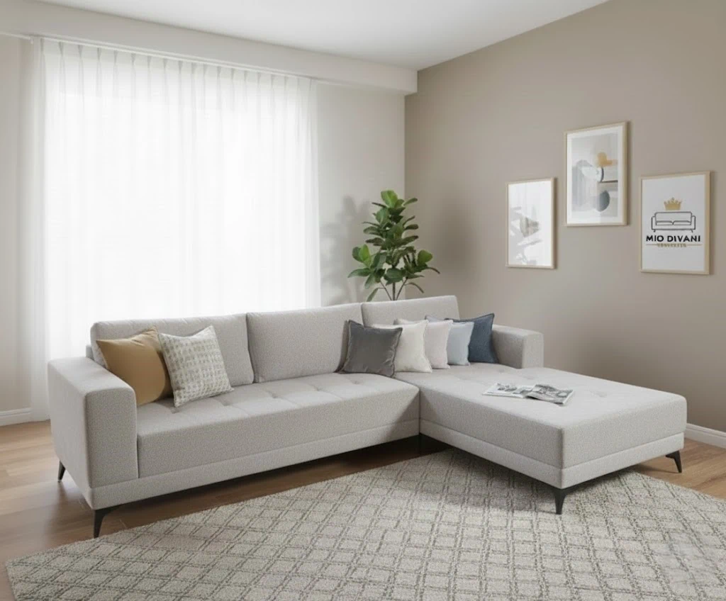 הכניסו סטייל אירופאי לסלון שלכם עם דגם ה-SIDNY. ספה פינתית (שזלונג) בעיצוב מודרני, המאופיינת בקווים ישרים ונקיים, כריות גב תפוחות ומפנקות ורגלי מתכת שחורות המעניקות לה מראה "מרחף" ואלגנטי. הגוון האפור הבהיר משתלב בהרמוניה בכל חלל ומעניק תחושת מרחב ואור
