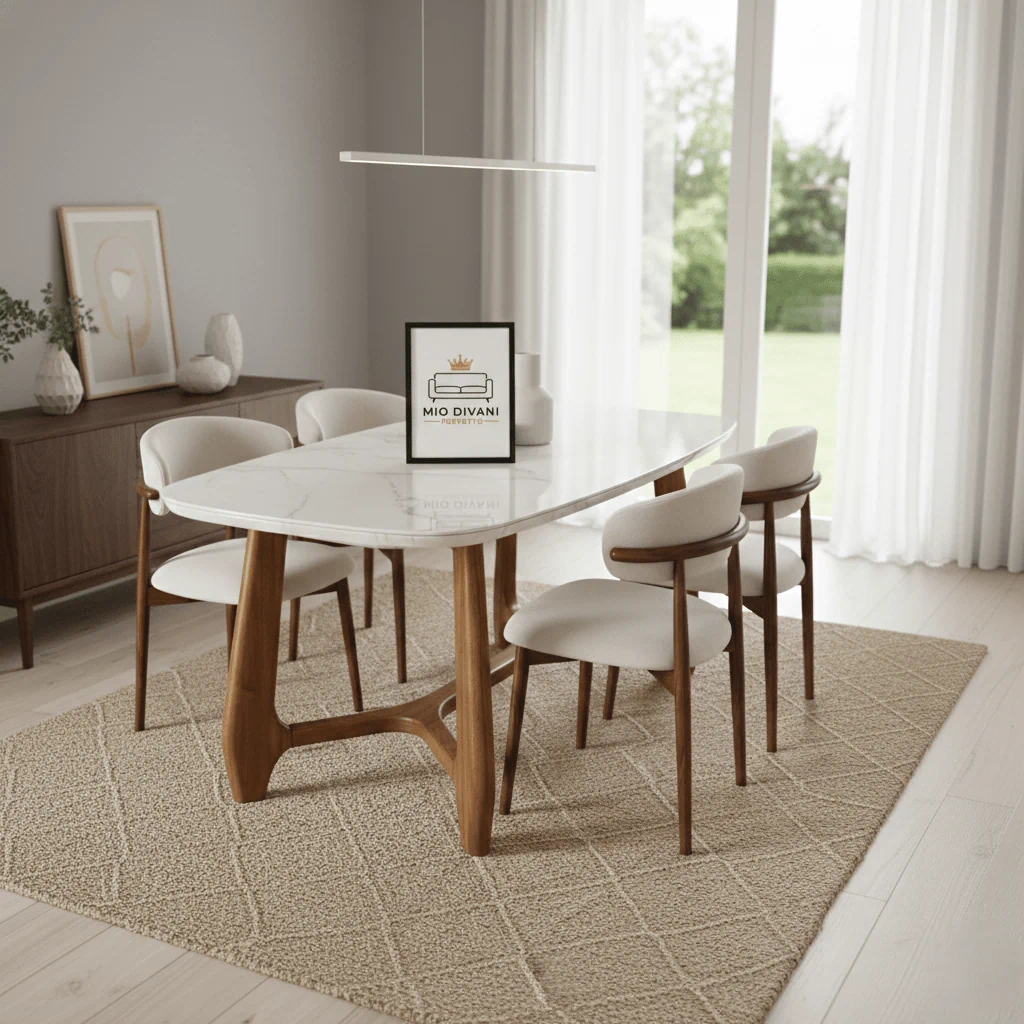 פינת האוכל מדגם VENEZIA חוגגת את היופי שבחומרים הטבעיים. השולחן מתאפיין במראה "Solid Wood" מלא, עם פלטת עץ עשירה ורגליים תואמות במבנה X עוצמתי, המעניקים לחלל החדר חמימות כפרית עם טאץ' מודרני מתוחכם